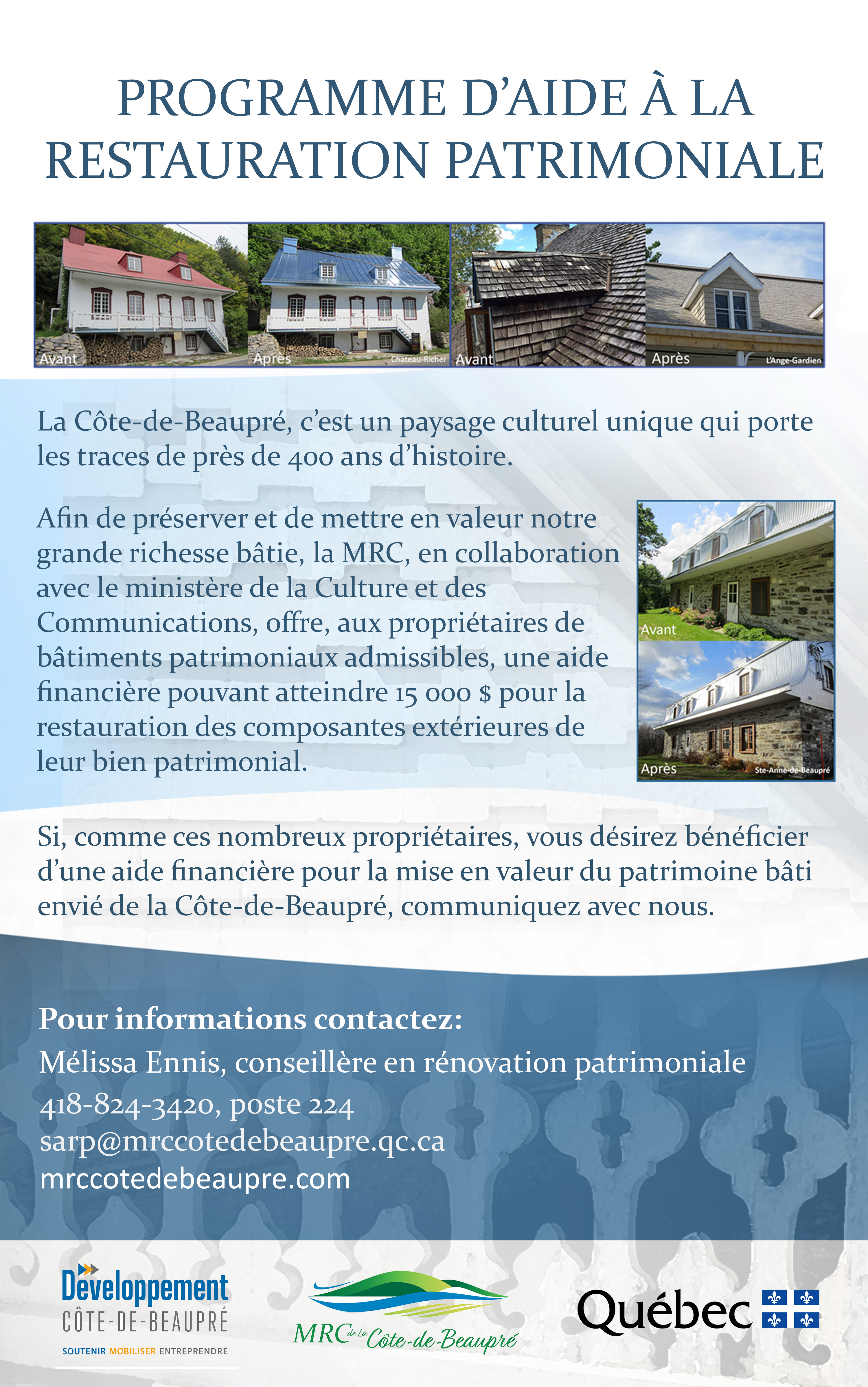 Pour informations : Programme d'aide à la restauration patrimoniale